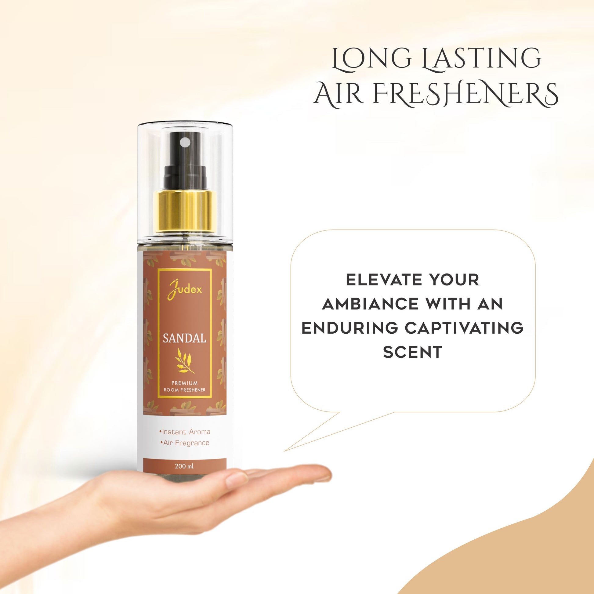 Formulated with high-quality fragrance extracts, Judex Sandal Air Freshener ensures a prolonged aromatic experience with every spray, keeping your space fresh, inviting, and spiritually charged for hours.